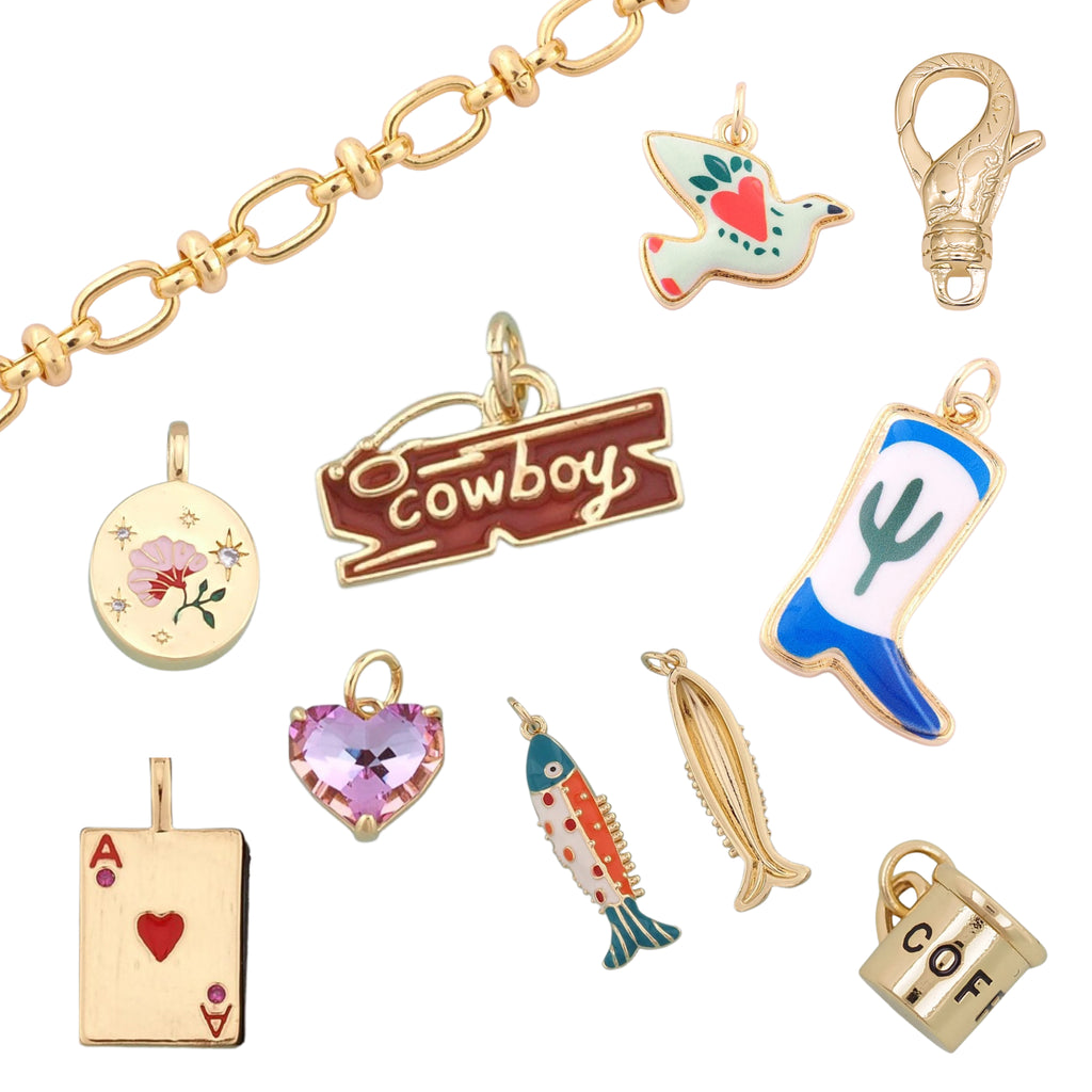 Every cowgirl needs a little jingle jangle when they are tromping around town. Since we don’t wear spurs let’s make some sound with a cute western charm bracelet. Unique with Wild West wimsy.